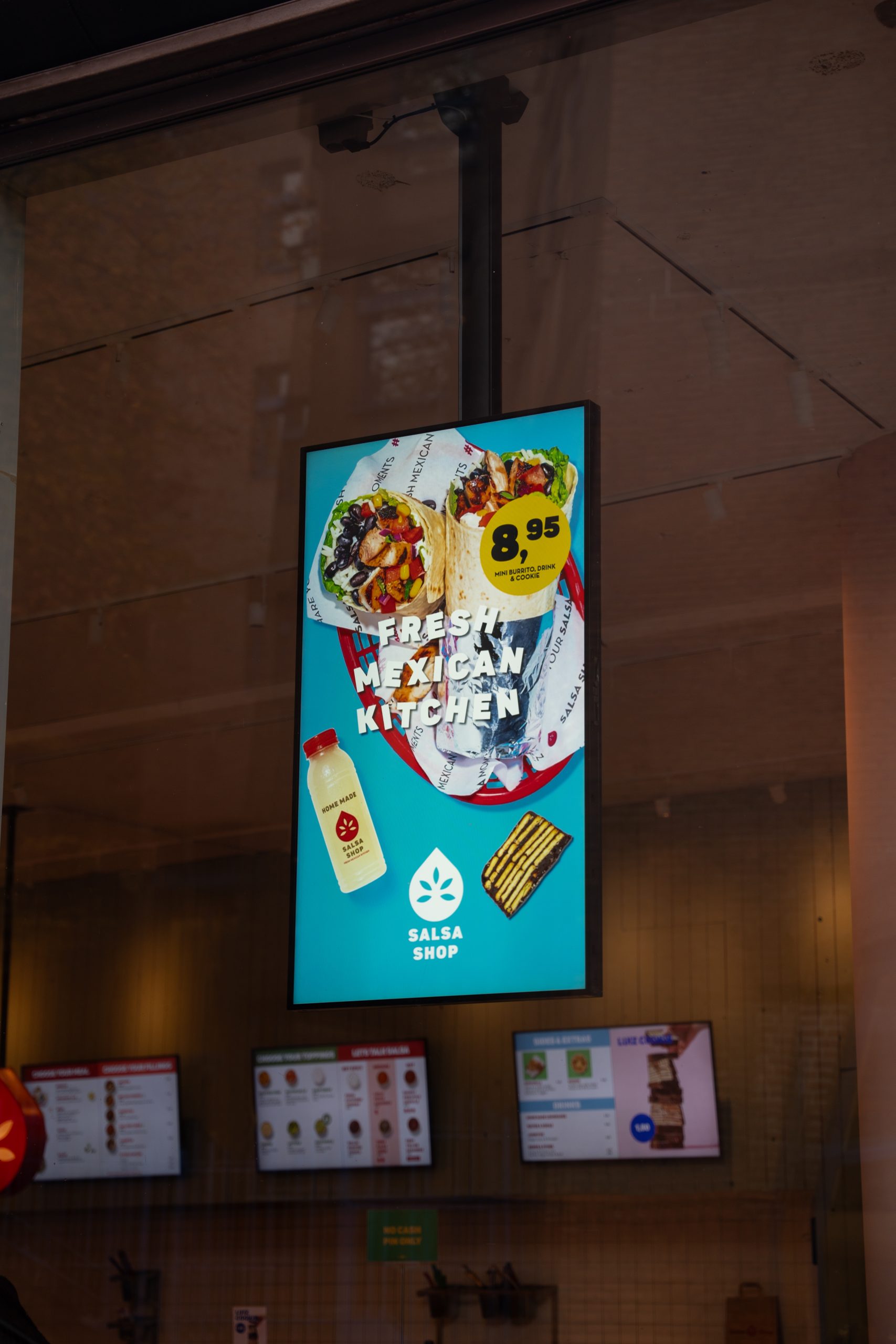 Salsa Shop is in korte tijd uitgegroeid tot een gevestigde naam binnen de Nederlandse foodwereld, met 18 vestigingen verspreid over zeven steden. Onder het motto ‘good food, fast’ zet de keten een nieuwe standaard in de branche. Salsa Shop ziet zichzelf als een ‘fast casual’ restaurant, een mix van fastfood en casual dining, waar hoogwaardige, verse ingrediënten en opvallende branding samenkomen. Met Digital Signage als strategisch instrument versterkt Salsa Shop niet alleen zijn merkidentiteit, maar ook de beleving van klanten, waarbij snelheid en kwaliteit naadloos worden gecombineerd.